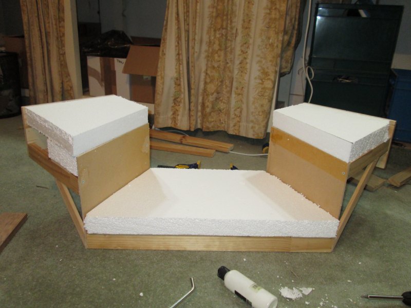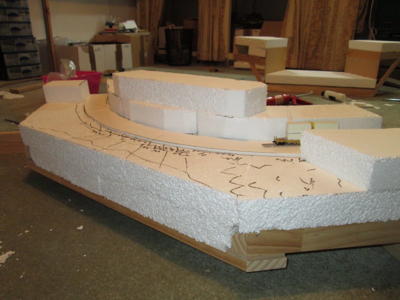 You can see that the left side has a thicker layer of polystyrene than the right; this will allow the valley to extend further in that direction.