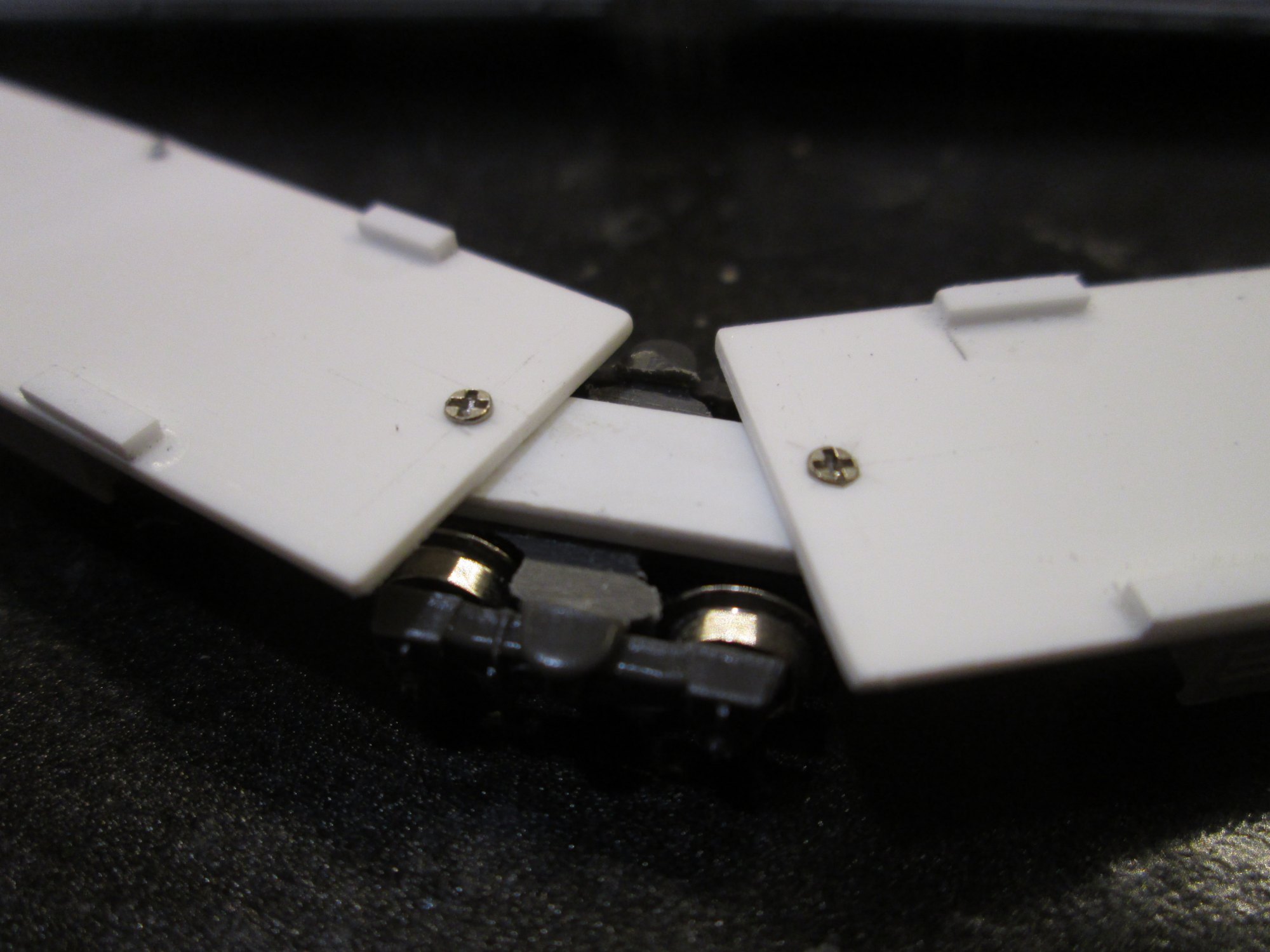 Next came the flexible gangways. I made these using my usual method. Despite my misgivings last time, there is nothing wrong with the method, in fact they work quite well when they are free to move around and not get snagged on wires, drive shafts, etc.