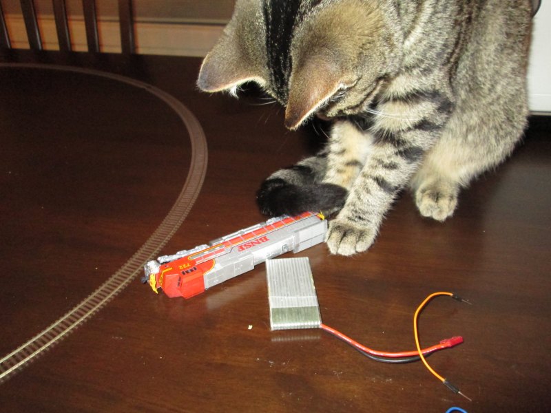 This is a fairly slow process, requiring the loco to run uninterrupted for around half an hour or so while it slowly converges on a desired profile. Unfortunately certain furry helpers of mine had different ideas!
