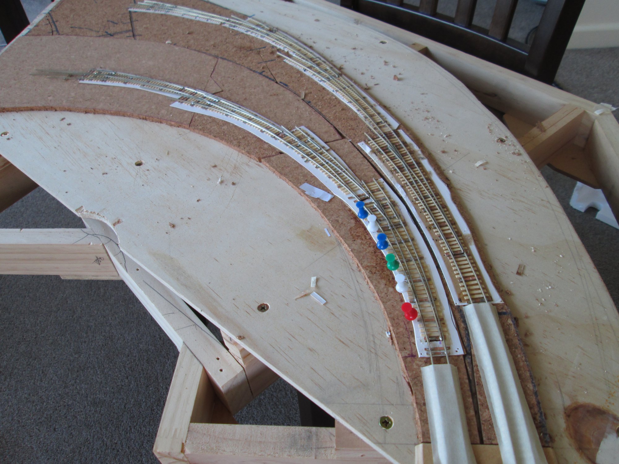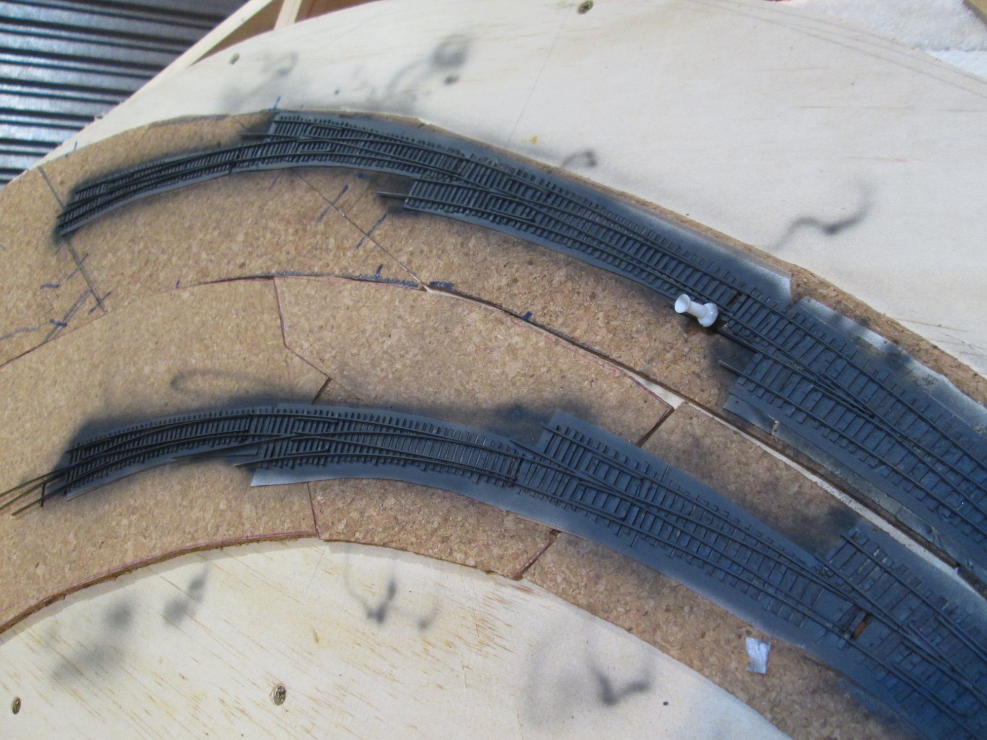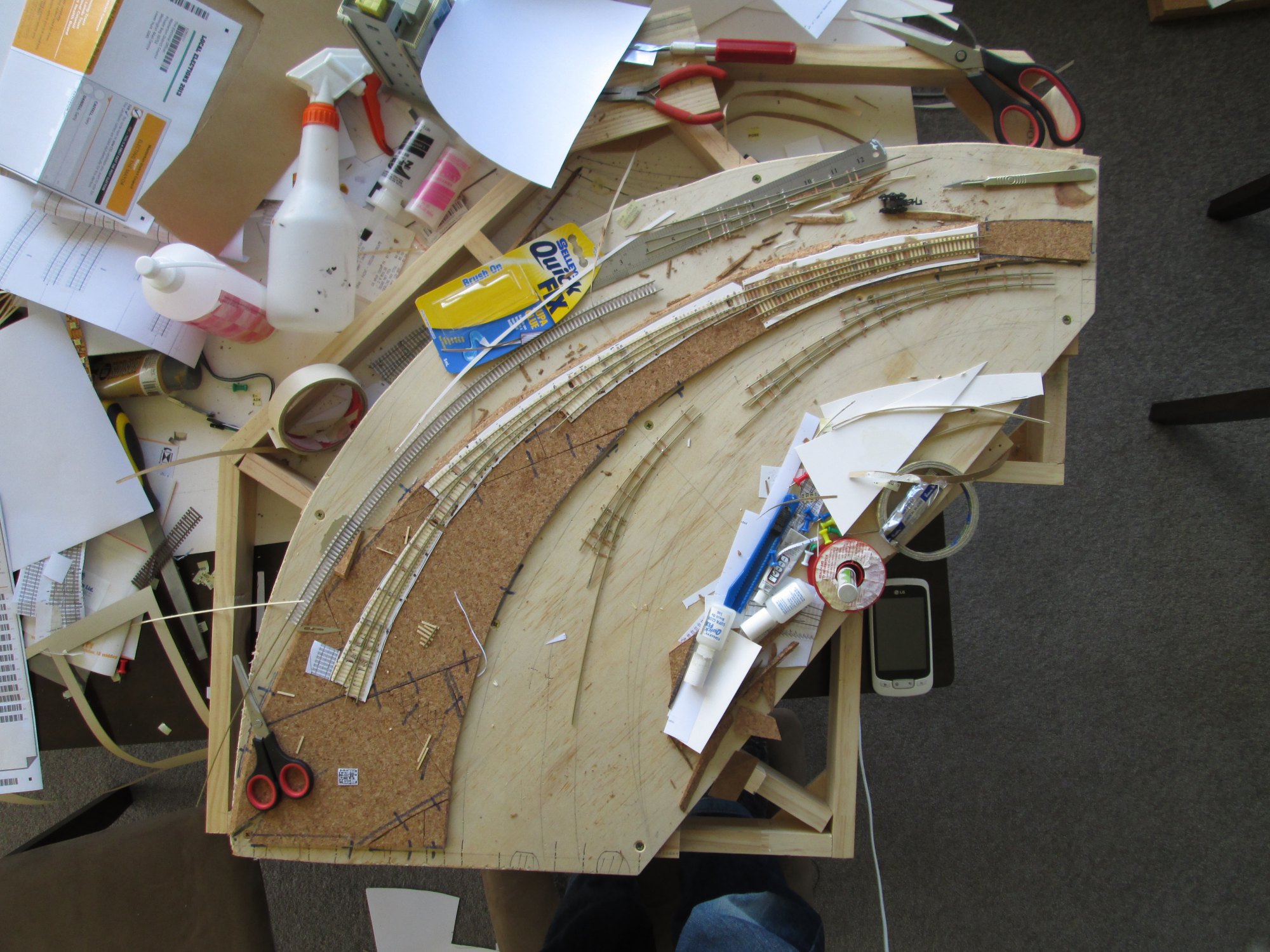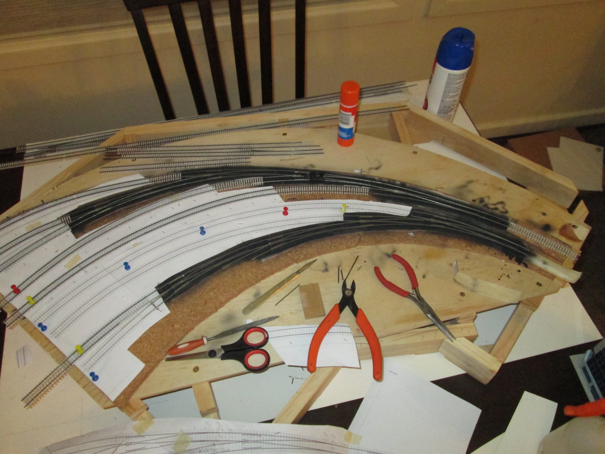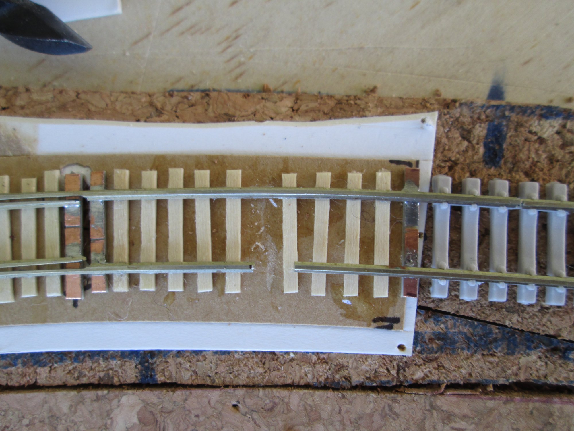 Then there was a mammoth gluing session, wherein I stuck down all the track to the cork. This was one of the places where the gluing went very wrong!