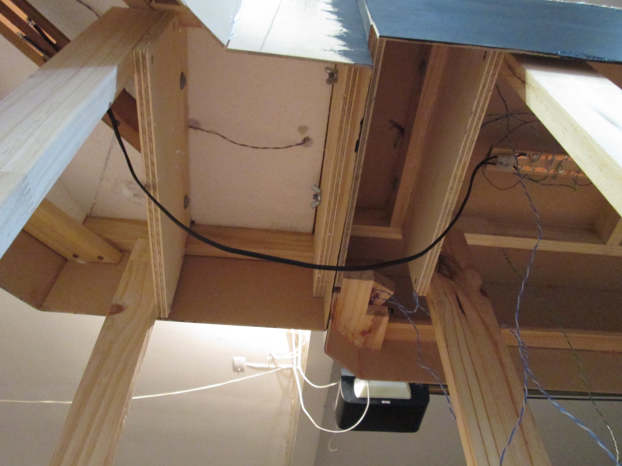Between each module I ran a small length of speaker wire from terminal block to terminal block. Nice and simple, low cost, quick, but still tidy and flexible. Here you can see the link from one module to another: