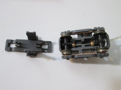 It's then a simple matter to push the brass contact strips out while prising out the wheels. I gave the pinpoints a good clean with alcohol and a toothpick before assembling them again. Everything else was given a good wipe down. Finally, a small drop of Conduct-o-lube was put on each axle point to help with conductivity.
