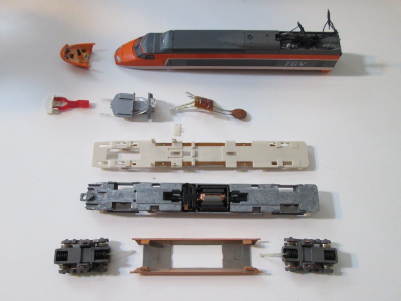 My Kato S14701 TGV arrived in pretty good condition, but still needed a bit of TLC before it would run. It dates from the 1980s and the wheels looked like they haven't ever been cleaned, but apart from that, all the paint is still in tact, nothing is missing, etc, so I think I did pretty well. However that said, if I wanted it to move at all, it would need a DCC decoder.